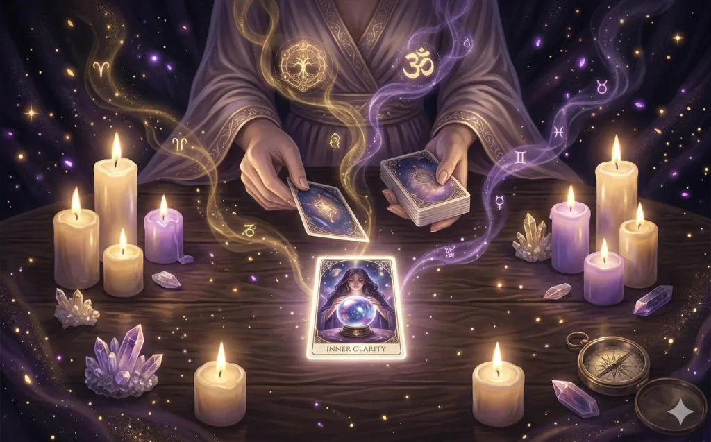 Astrología, tarot y numerología como lenguajes de autoconocimiento, comprensión y lectura profunda del proceso interior.